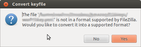 FileZilla will convert *.pem file to .ppk file which is Putty Private Key format and save it in a location you specify.